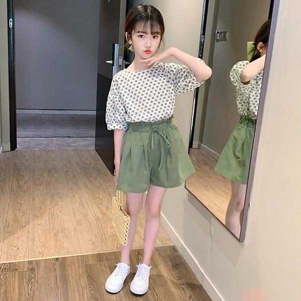 韓国子供服 2点セット Tシャツ 半ズボン カジュアル ナチュラル パンツ 夏 半袖 セットアップ スポーツウェア ゆったり リゾート パーティ 110 160cm 入学式 運動会 休み 女の子 きれいめ キッズ 可愛い こども グリーン 卒園式